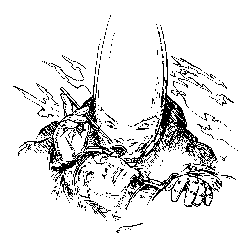 Gulliam herceg a Palota kupolájának tetejéről szemlélte a lángban álló várost. Látta, hogy a menekülők már átlépték a külső fal kapuit és véget érni nem akaró sorokban siettek a vadállatoktól hemzsegő dzsungel párás zöld tömbje felé.