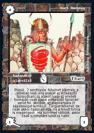 Kiadás: Alappakli, 1. kiadás, Alappakli, 2. kiadás Gyakoriság: ritka Lapszín (isten): Tharr Típus: kalandozó Altípus: alakváltó Szöveg: Repül. 2 szintlépés: felveheti bármely, a játékban levő lény alakját az előkészítő fázisodban. új alakot (vagy az eredeti formáját) csak újabb előkészítő fázisban vehet fel. Minden, az alapkártyára írt képességet lemásol. Tárgyat felvehet, de csak akkor használhatja, ha a felvett forma is megengedi. Ha szörnnyé változik, akkor csak szörnyként lehet rá hatni. Illusztráció: Kerekes Ilona