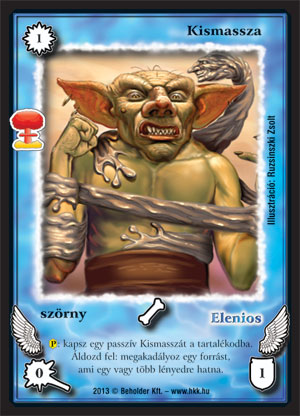 Kiadás: Világégés Gyakoriság: ritka Lapszín (isten): Elenios Típus: szörny Szöveg: (P): kapsz egy passzív Kismasszát a tartalékodba. Áldozd fel: megakadályoz egy forrást, ami egy vagy több lényedre hatna. Illusztráció: Ruzsinszki Zsolt