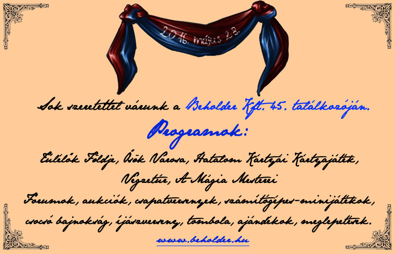 Főoldal | Túlélők Földje | Ősök Városa | Kalandok Földje | Sárkányölő | Puzzle | Hatalom Kártyái Kártyajáték | Álomfogó Kártyajáték | Káosz Galaktika Kártyajáték | Könyvesbolt | Alanori Krónika | Shadowrun | Battletech | Íróink | Könyvsorozataink | Fórum | Galéria és képeslapküldő | Sci-fi és fantasy novellák | Regisztráció | A Beholder Kft.-ről | Adatvédelmi tájékoztató