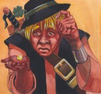 Casuel D'evoir, a sznob mágus, arca szegletében előkelően mosolyogva figyeli, amint áldozata, Kreve Tor Bezaemar a varázsindák fogságában vergődik.